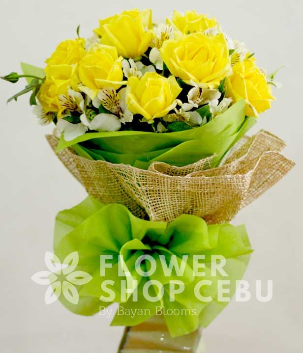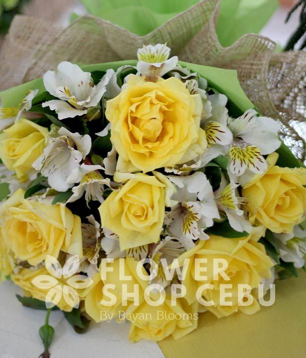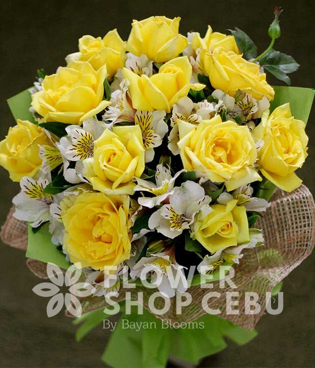 1 Dozen Yellow Roses w/ Alstroemeria (Round Bouquet)